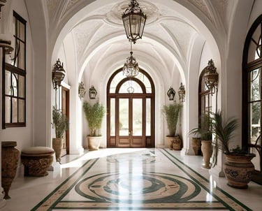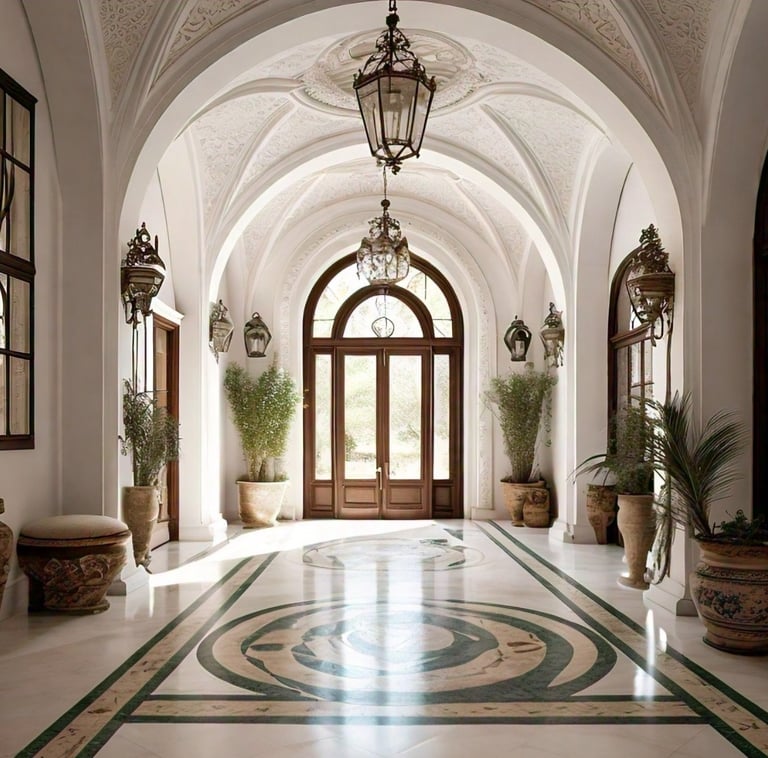 Arched Ceilings and Doorways: The use of arches evokes traditional Mediterranean architecture, reminiscent of Spanish and Italian villas.